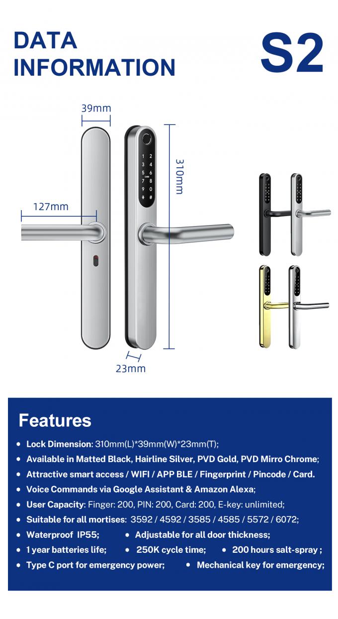 | Ways to Unlock | Ble/WiFi APP Access,Fingerprint, PIN Code, Card, Mechanical Key |